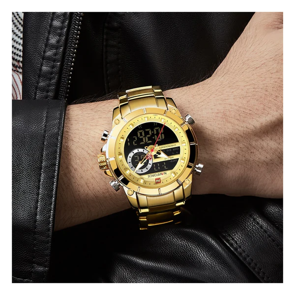 Naviforce NF9163 | Men’s Dual Movement Stainless Steel Watch-Golden