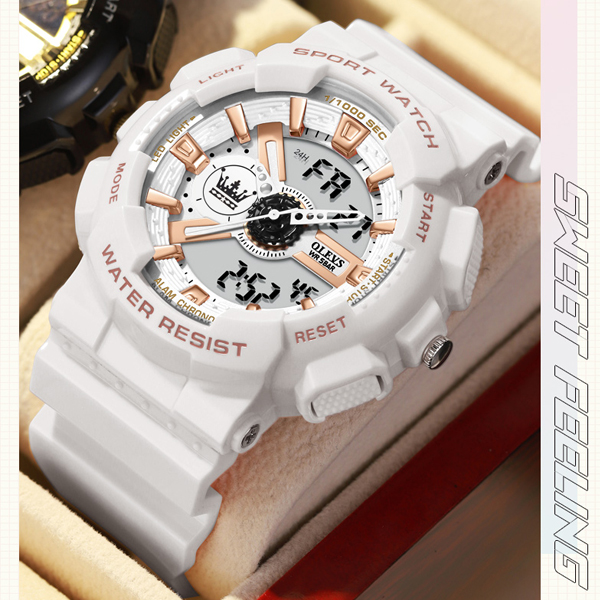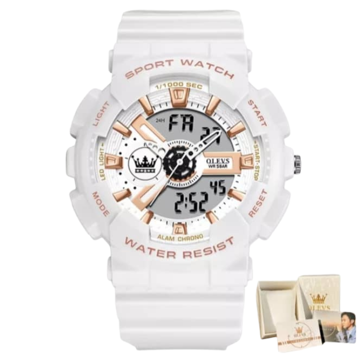 Olevs 1102 Rubber Dual Time Wrist Watch For Men’s