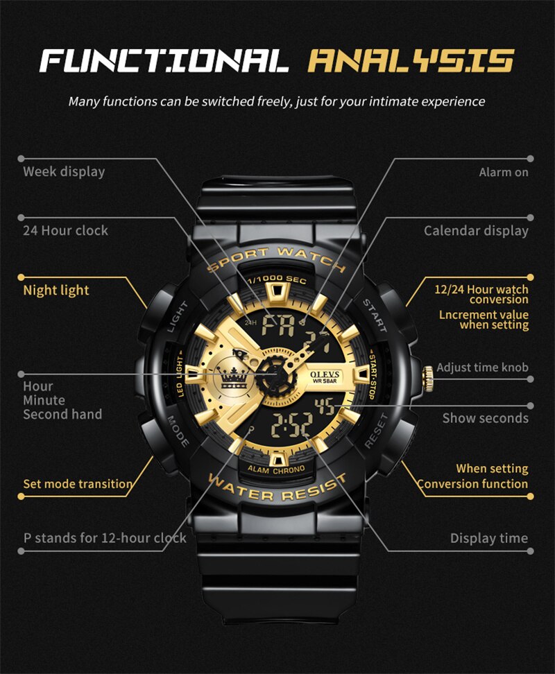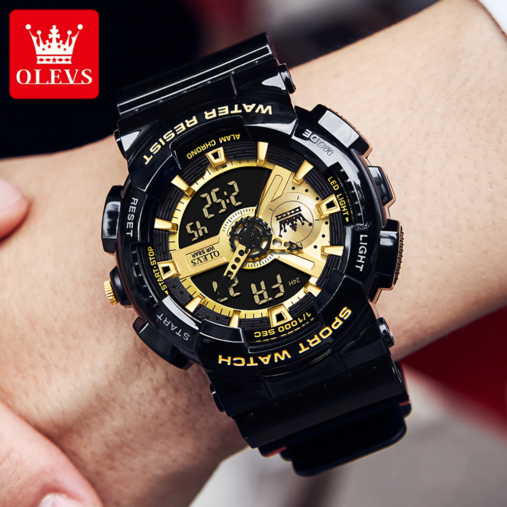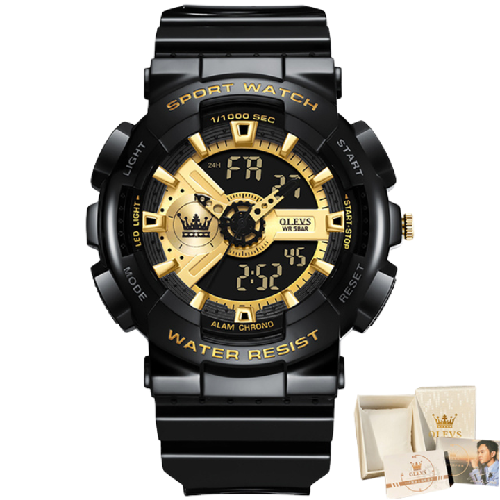 Olevs 1102 Rubber Dual Time Wrist Watch For Men’s