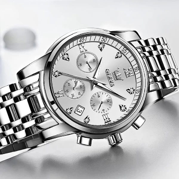 OLEVS 2858 Quartz Stainless Steel Watch-Silver