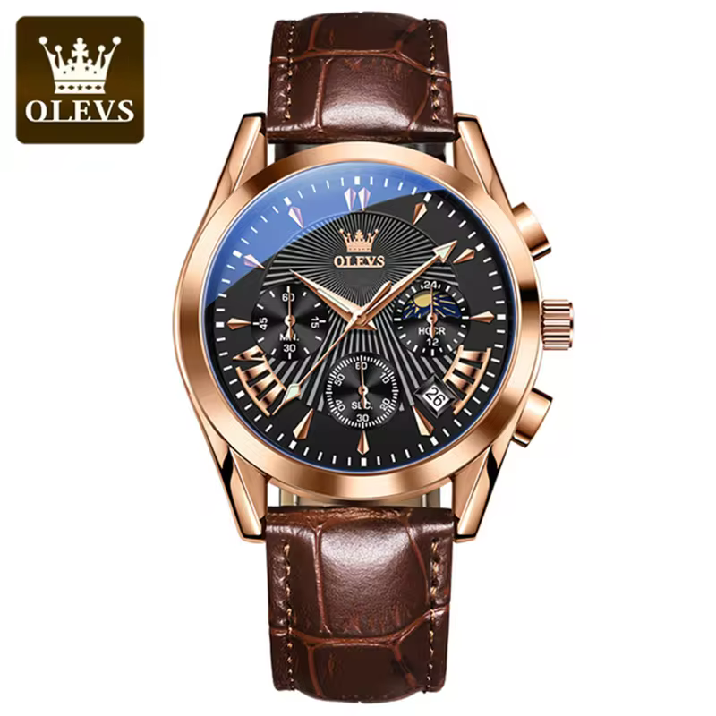 OLEVS 2876 Quartz Leather Strap Watches for Men