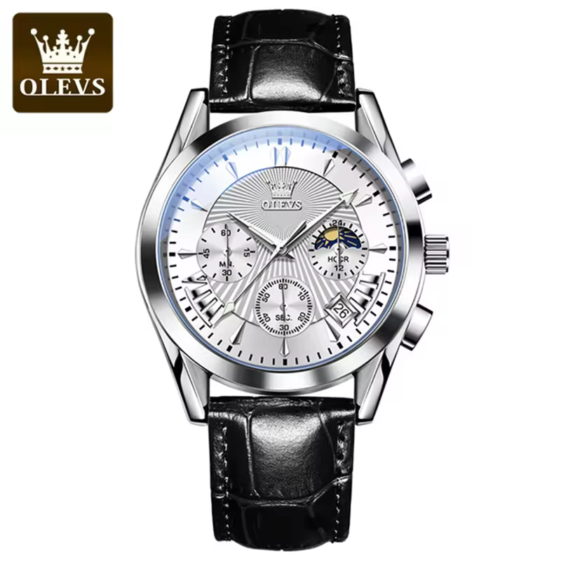 OLEVS 2876 Quartz Men Wristwatches Genuine Leather Strap Watches for Men