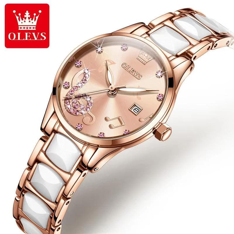 Olevs 3605 Ceramics strap Watch For Women