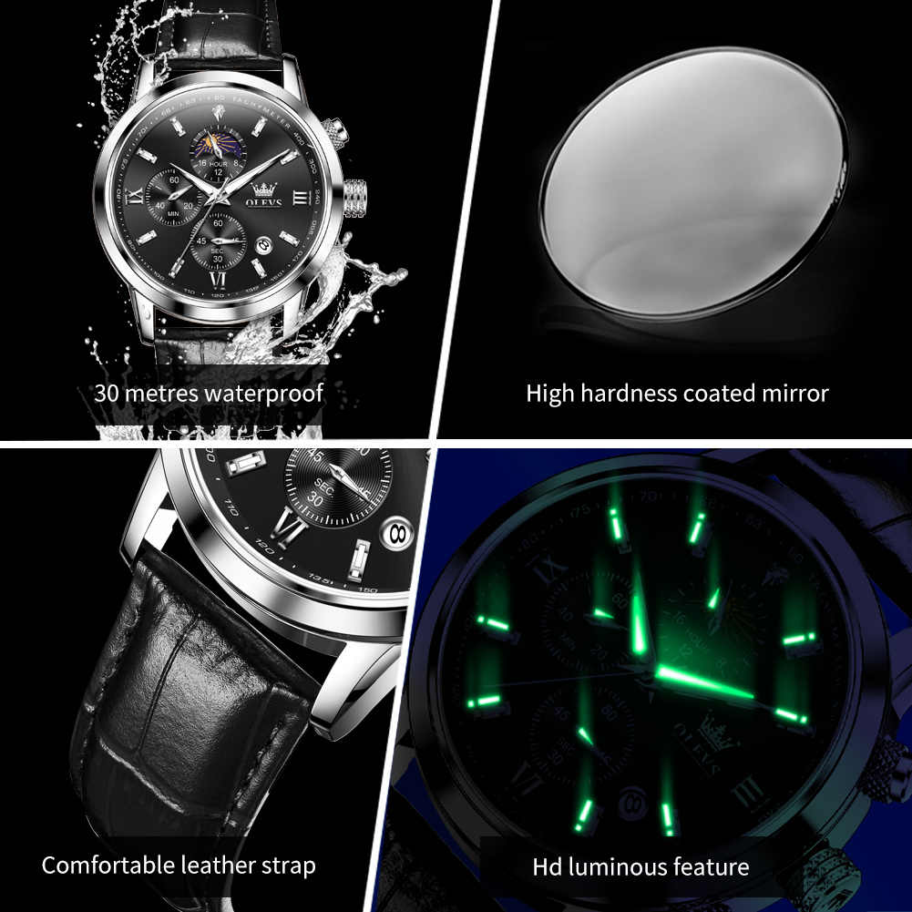 OLEVS 9812 Men’s Luxury Leather Quartz Watch