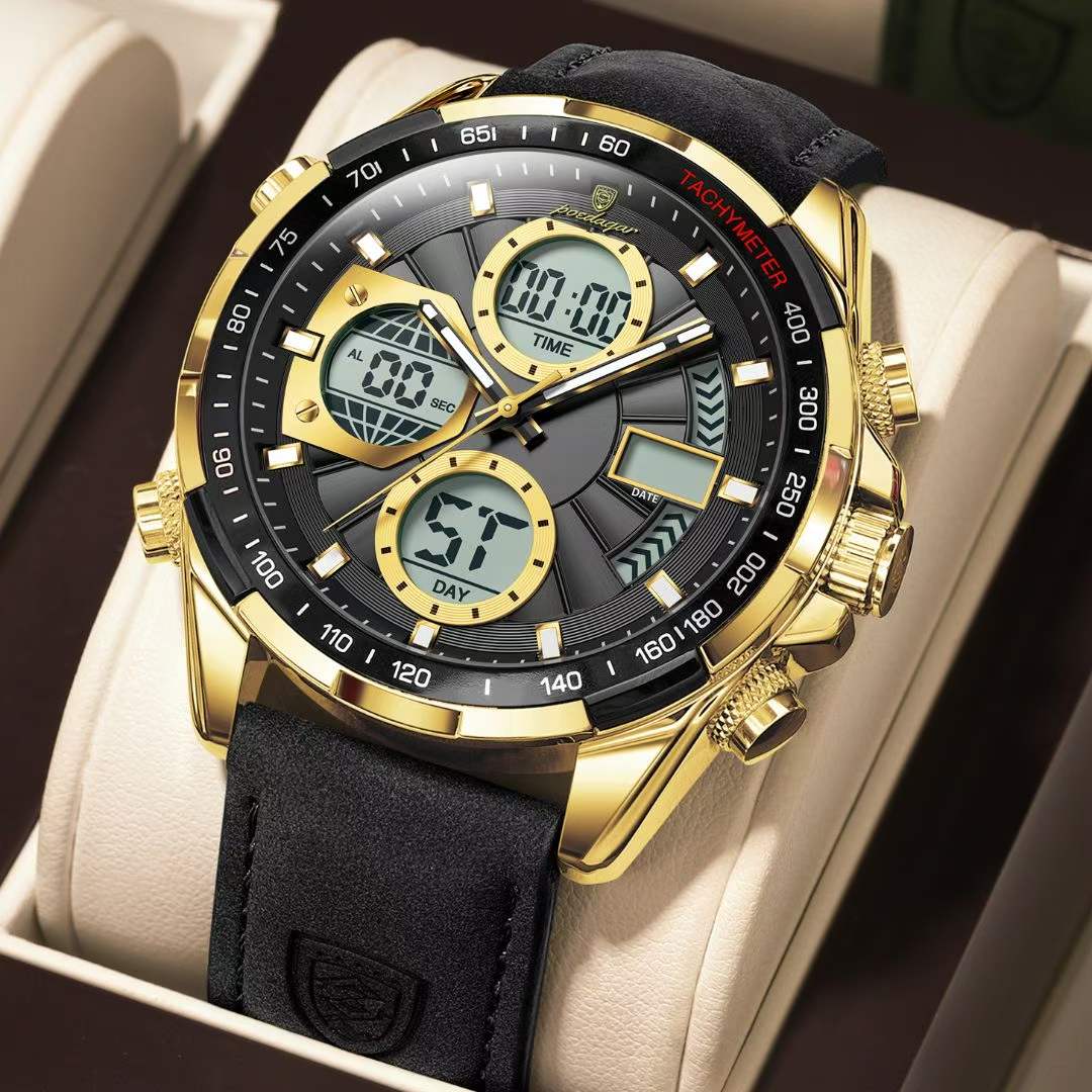Poedagar 108 Men’s Luxury Leather Casual Watches golden merun